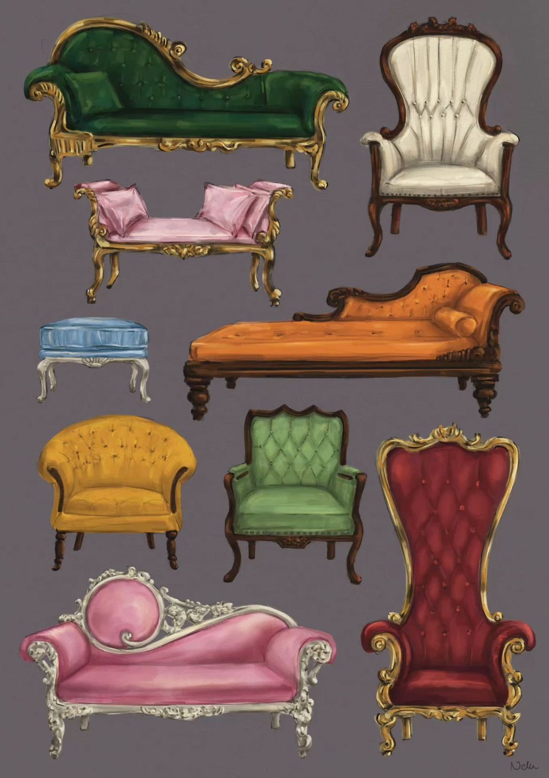 Aquí rediseñamos mobiliario de nuestra propia casa, haciéndolos en 4 estilos diferentes de arquitectura:
